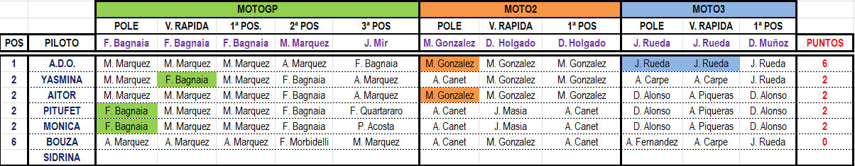 Re:17ª Porra Motociclismo. GP de Japón, 28 de Septiembre 2025