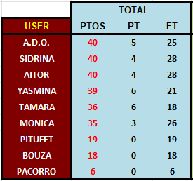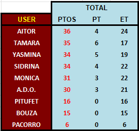 CLASIFICACIÓN DESPUES DE LA 6ª JORNADA
