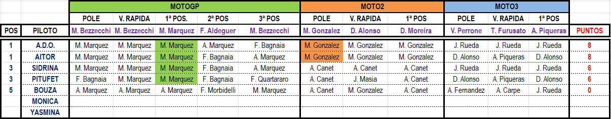 Re:13ª Porra Motociclismo. G.P. AUSTRIA. 16 de Agosto de 2025
