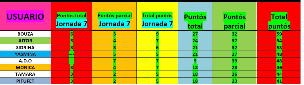 Re:CLASIFICACION PORRA XPERIENCE-SAT 2025/26